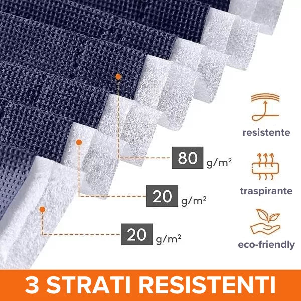 Vestiti sempre al riparo da polvere, umidità, odori e insetti grazie a 3 strati in tessuto traspirante.
