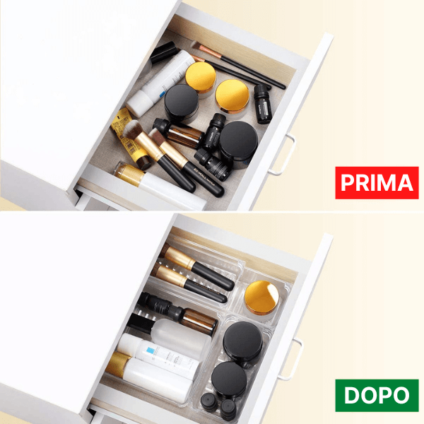 Il nostro set dI organizzatori per cassetti in plastica nasce per semplificarti la vita, rendendo ogni cassetto sempre impeccabile ed ordinato alla perfezione.