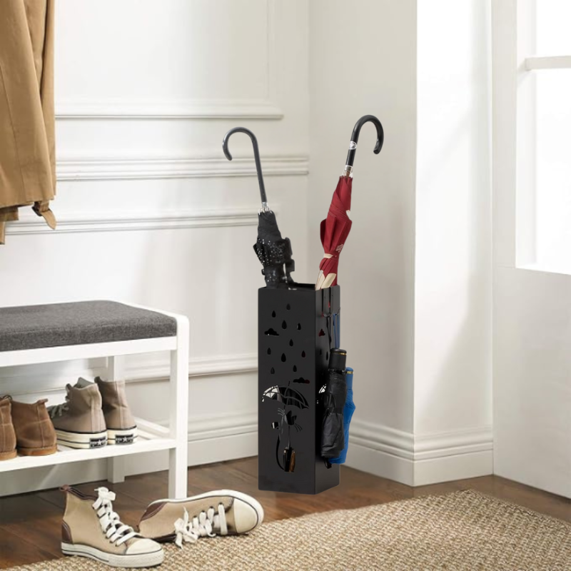 SPAZIOSO: può contenere fino a 6 ombrelli lunghi o altri oggetti, e grazie ai 4 ganci dedicati puoi appendere anche ombrelli piccoli e pieghevoli